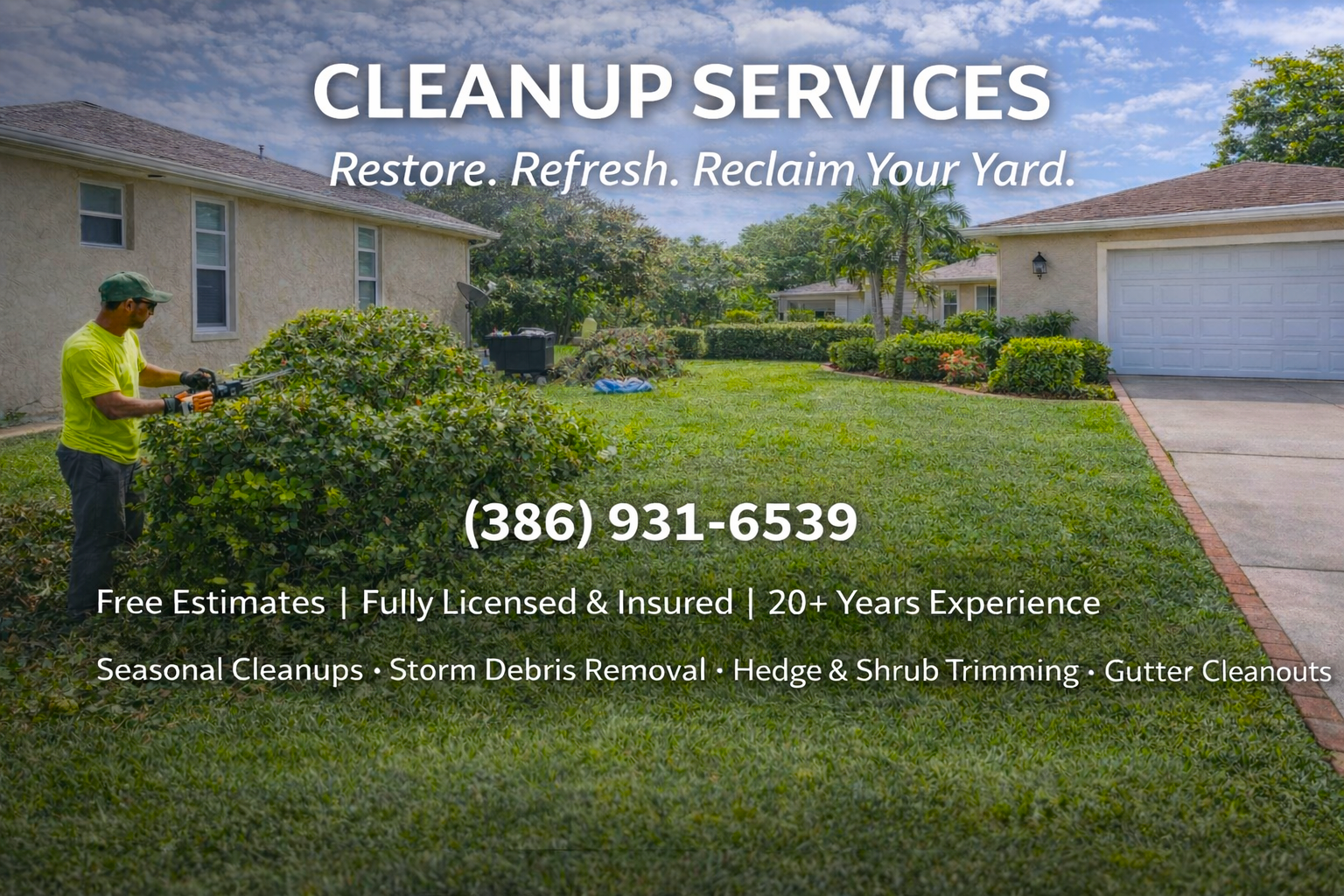 Transform your outdoor space with our professional Yard Clean-Up services! Whether it's clearing out debris, trimming overgrown bushes, removing fallen leaves, or preparing your yard for the upcoming season, our team is here to help. We provide thorough, reliable, and eco-friendly clean-up solutions to make your yard look neat, organized, and inviting.